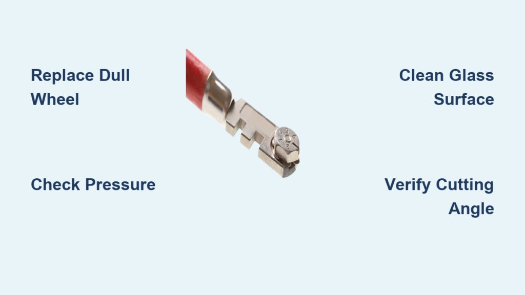 Your glass cutter glides across the pane but leaves no score line, requiring multiple passes that crack your project into