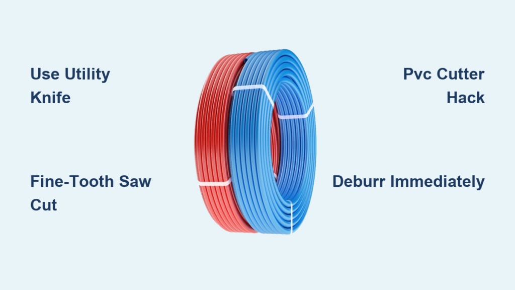 Warning: Never use a coarse wood-cutting saw—its aggressive teeth will tear the PEX walls and create dangerous burrs. A PVC-specific pipe saw from your local hardware store costs less than $10 and pays for itself in perfect cuts.