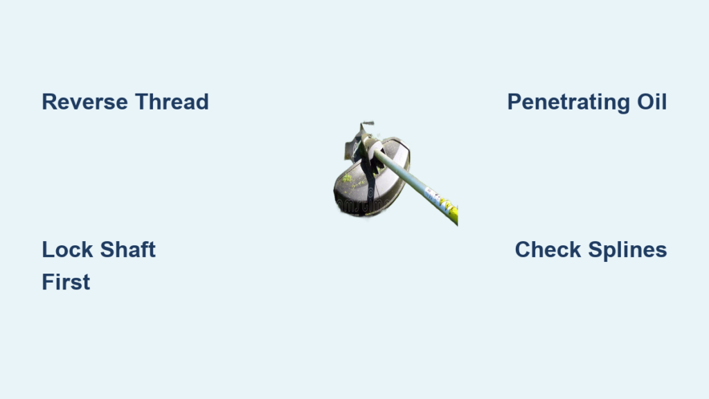 Spray PB Blaster directly into the seam where the head meets the shaft. Wait 10 minutes minimum—this dissolves grass resin and metal oxides. Critical: WD-40 won’t work here; use proper rust penetrant like Kroil.