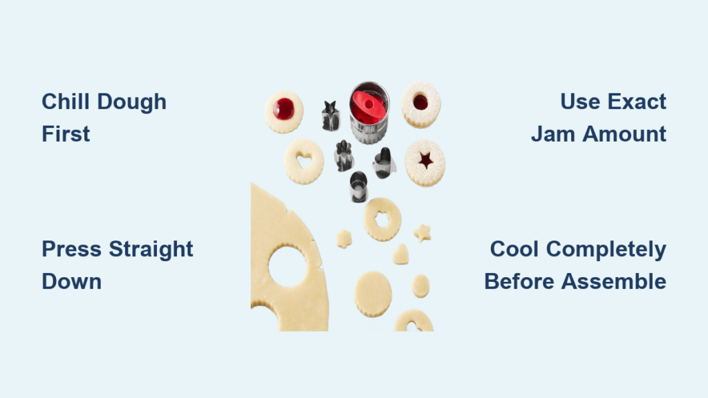 Mismatched top and bottom cookies cause misaligned jam windows—the #1 assembly headache. Fix this by using identical base cutters for both layers. For perfect cut-outs:
