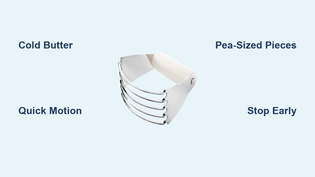Warning sign: Large dough balls forming indicate overworking—stop immediately. This is the most common mistake when learning how to use a pastry cutter properly.