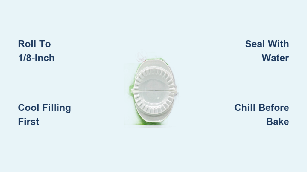Emergency fix for overfilled pies: Carefully slice open the top crust with a paring knife, spoon out excess filling, reseal with water, and refrigerate 10 minutes before baking. Never try to “squeeze out” extra filling—that stretches the dough and guarantees leaks.